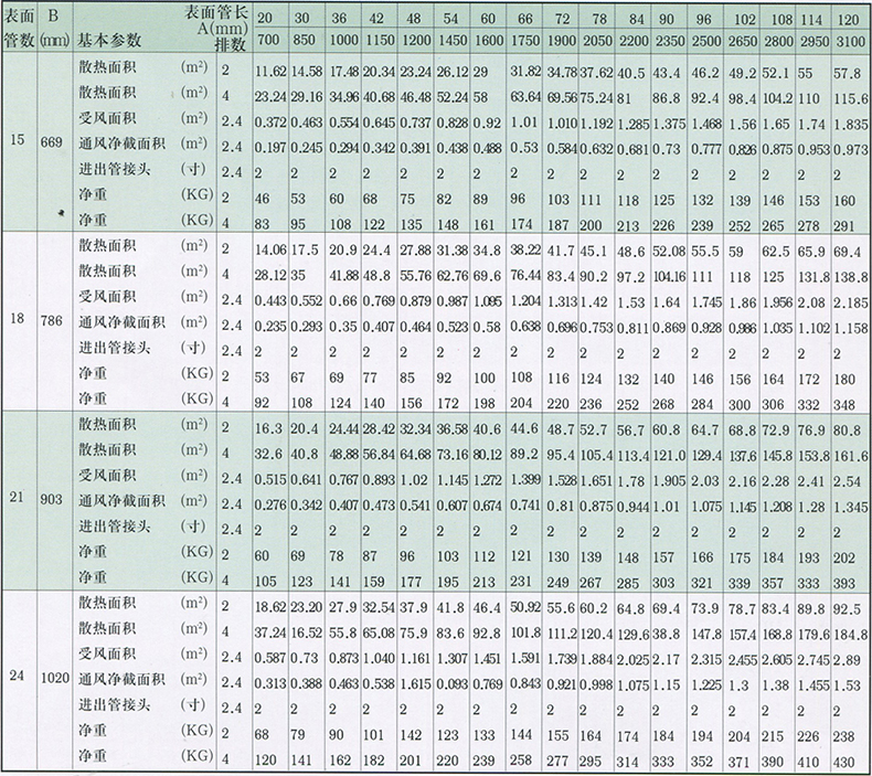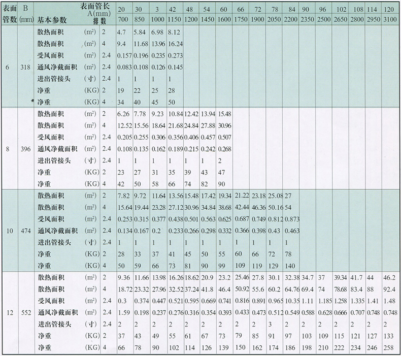 如采用四排,表面管数为(wéi)10,管长为42英寸时,则为GLⅡ-4-10-42。